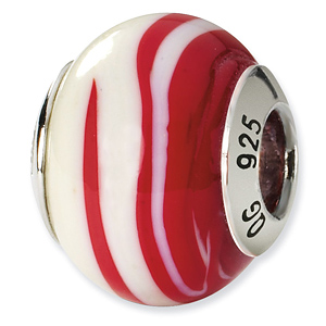 Red, Orange and white bead is made of Murano glass and antiqued, solid sterling silver. Color range varies. Made in Italy.