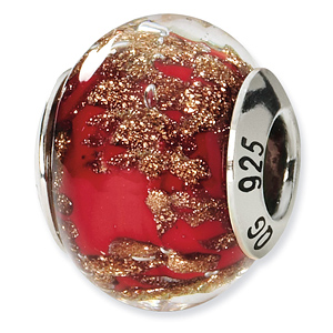 Red and gold bead is made of Murano glass and antiqued, solid sterling silver. Color range varies. Made in Italy.