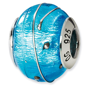 Electric blue bead is made in Italy of Murano glass and antiqued, solid sterling silver. Color range varies.