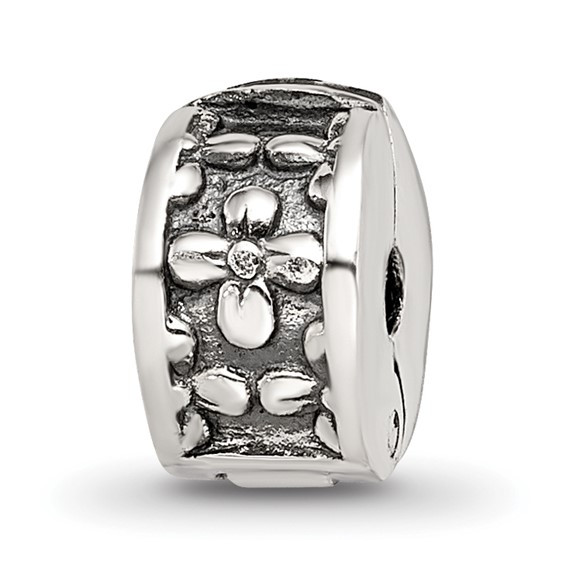 Floral clip bead is suited for children's bracelets and is made of antiqued, solid sterling silver. Intended for ages 4 and up. Imported.