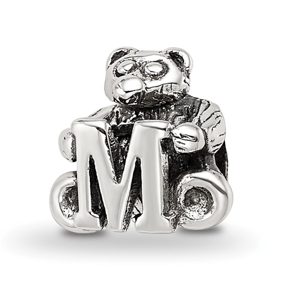 This letter M teddy bear bead is suited for children's bracelets and is made of antiqued, solid sterling silver. Intended for ages 4 and up. Imported.