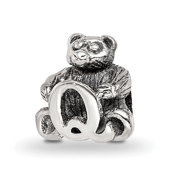 This letter Q teddy bear bead is suited for children's bracelets and is made of antiqued, solid sterling silver. Intended for ages 4 and up. Imported.