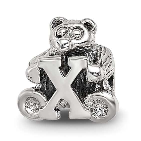This letter X teddy bear bead is suited for children's bracelets and is made of antiqued, solid sterling silver. Intended for ages 4 and up. Imported.