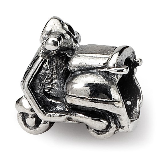 This scooter bead is suited for children's bracelets and is made of antiqued, solid sterling silver. Intended for ages 4 and up. Imported.