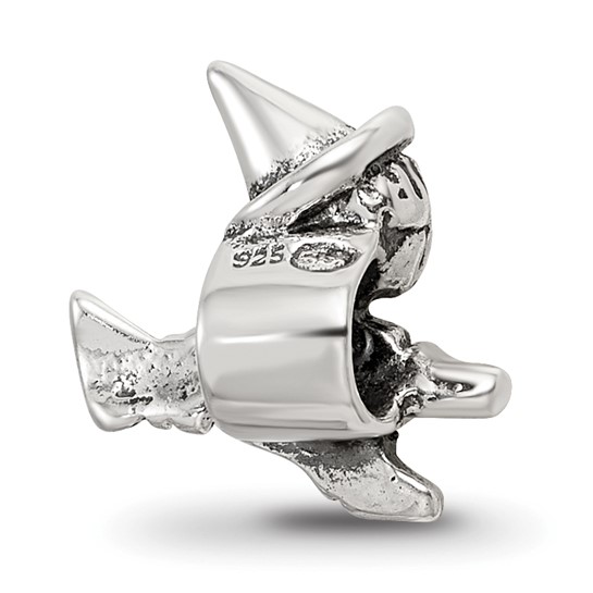 This kid's witch bead is suited for children's bracelets and is made of antiqued, solid sterling silver. Intended for ages 4 and up. Imported.