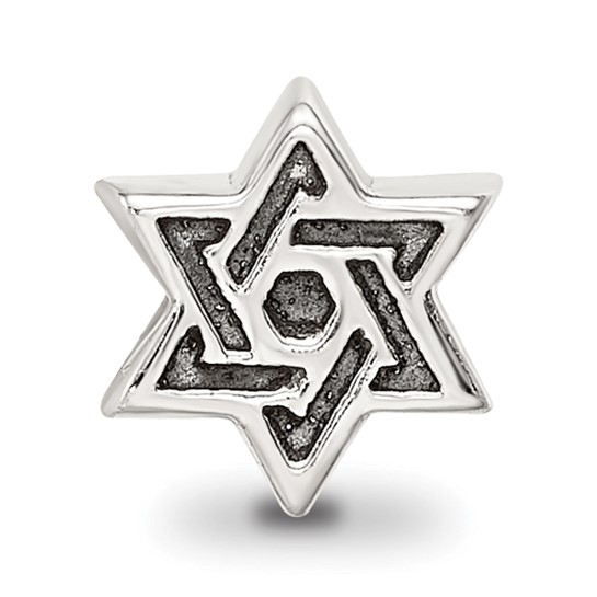 This kid's star of David bead is suited for children's bracelets and is made of antiqued, solid sterling silver. Intended for ages 4 and up. Imported.