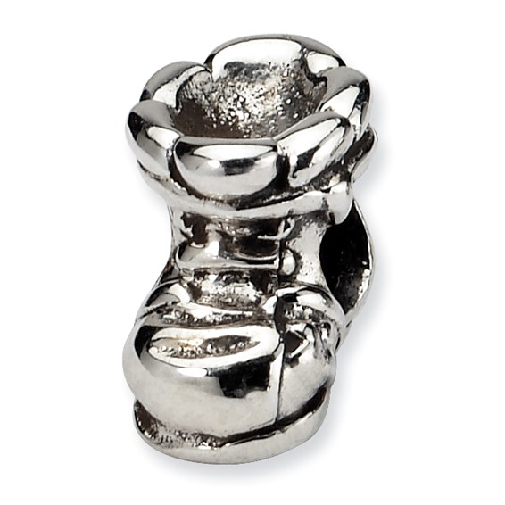 This kid's shoe bead is suited for children's bracelets and is made of antiqued, solid sterling silver. Intended for ages 4 and up. Imported.