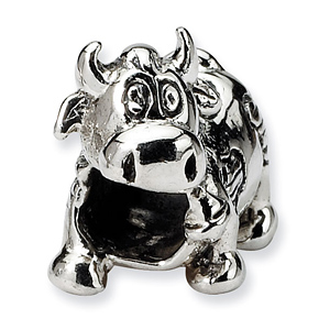 This kid's cow with cow bell bead is suited for children's bracelets and is made of antiqued, solid sterling silver. Intended for ages 4 and up. Imported.