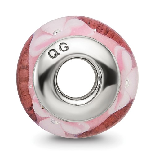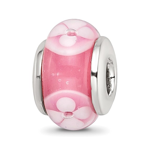 This kid's pink with faded white flower glass bead is suited for children's bracelets and is made of antiqued, solid sterling silver. Intended for ages 4 and up. Imported.