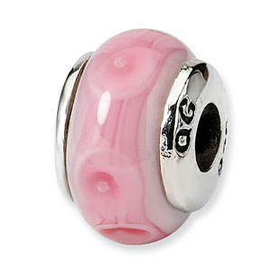 This kid's pink with white amoeba glass bead is suited for children's bracelets and is made of antiqued, solid sterling silver. Intended for ages 4 and up. Imported.