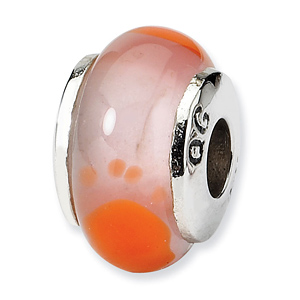 This orange foot design Murano glass bead is suited for children's bracelets and is made of antiqued, solid sterling silver. Intended for ages 4 and up. Imported.