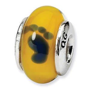 This kid's yellow with footprint glass bead is suited for children's bracelets and is made of antiqued, solid sterling silver. Intended for ages 4 and up. Imported.