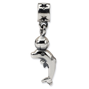 This dolphin with ball dangle bead is suited for children's bracelets and is made of antiqued, solid sterling silver. Intended for ages 4 and up. Imported.