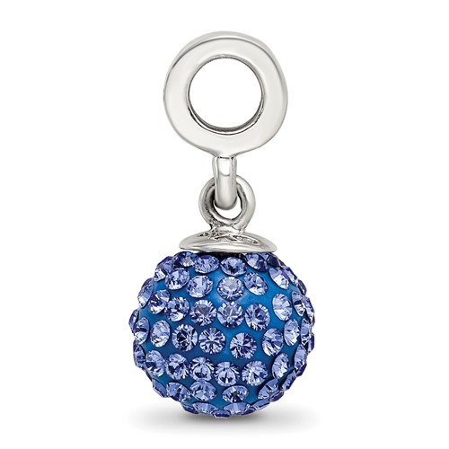 This September Swarovski crystal ball dangle bead is made of antiqued, solid sterling silver. Imported. Hole in dangle is 4mm. This dangle is compatible with all major personalized bead bracelet systems.