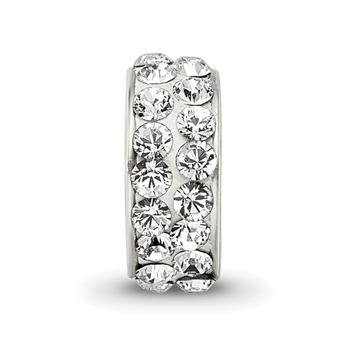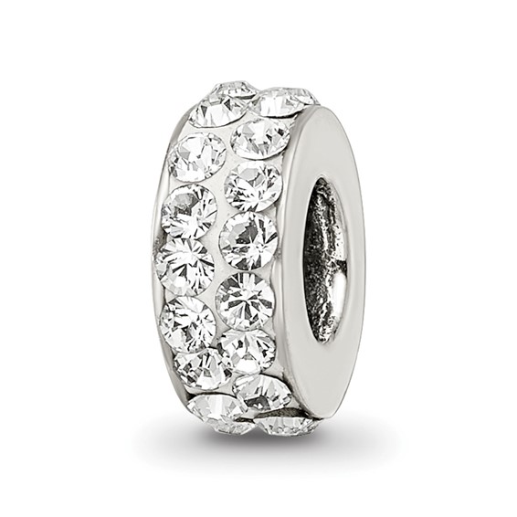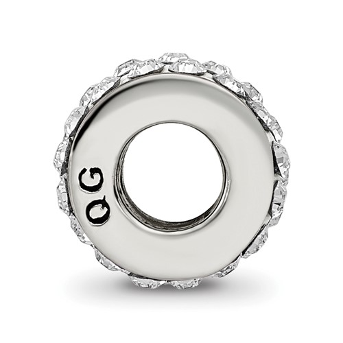 Made of antiqued, solid sterling silver. Two rows of Swarovski crystals encircle the entire bead. Bead dimensions: approximately 13.25mm diameter, bead hole: 4.00mm diameter. Imported.