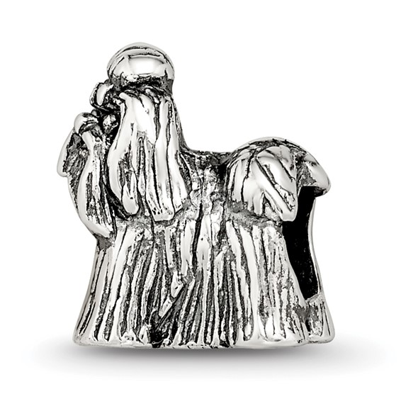 Shih tzu dog bead is made of antiqued, solid sterling silver. This bead fits all major modular bracelet brands. Imported.