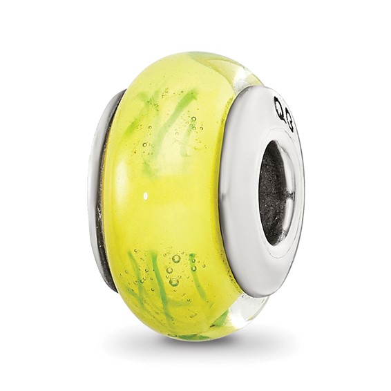 This yellow hand-blown glass bead has green scribbles. Made of antiqued, solid sterling silver. Bead dimensions: approximately 13.25mm diameter, bead hole: 4.00mm diameter. Imported.