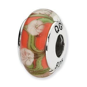 This red floral pattern glass bead is made of antiqued, solid sterling silver. Bead dimensions: approximately 13.25mm diameter, bead hole: 4.00mm diameter. Imported.