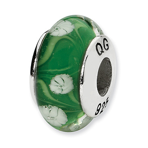 This green white flower pattern glass bead is made of antiqued, solid sterling silver. Bead dimensions: approximately 13.25mm diameter, bead hole: 4.00mm diameter. Imported.
