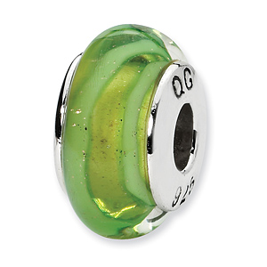 This green moon swirl glass bead is made of antiqued, solid sterling silver. Bead dimensions: approximately 13.25mm diameter, bead hole: 4.00mm diameter. Imported.