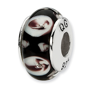 Black, purple and white floral bead is made of antiqued, solid sterling silver. Bead dimensions: approximately 13.25mm diameter, bead hole: 4.00mm diameter. This Reflection bead fits all major modular bracelet brands. Available while supplies last. Made in Thailand.