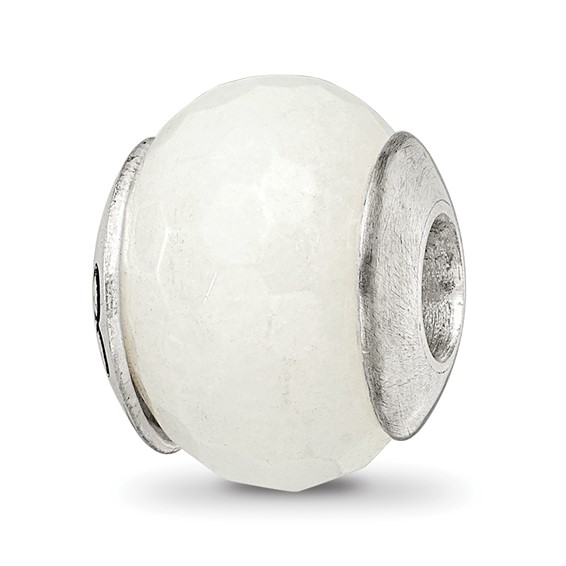 This white quartz stone bead is made of antiqued, solid sterling silver. Bead dimensions: approximately 13.25mm diameter, bead hole: 4.00mm diameter. Imported.