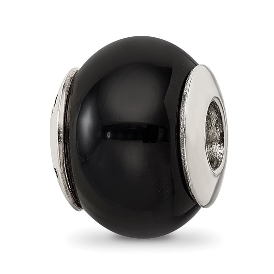 This smooth black agate stone bead is made of antiqued, solid sterling silver. Bead dimensions: approximately 13.25mm diameter, bead hole: 4.00mm diameter. Imported.