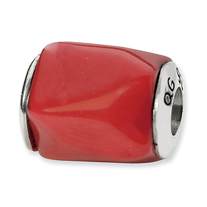 Barrel shaped natural red coral stone bead is made of antiqued, solid sterling silver. Bead dimensions: 13.25mm diameter, bead hole: 4.00mm diameter. Imported.