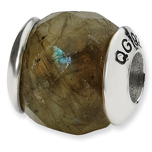 Labradorite stone bead is made of antiqued, solid sterling silver. Bead dimensions: approximately 13.25mm diameter, bead hole: 4.00mm diameter. Imported.