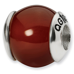 This smooth round carnelian stone bead is made of antiqued, solid sterling silver. Bead dimensions: approximately 13.25mm diameter, bead hole: 4.00mm diameter. Imported.