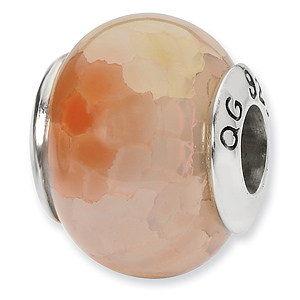 This pink and orange cracked agate stone bead is made of antiqued, solid sterling silver. Bead dimensions: approximately 13.25mm diameter, bead hole: 4.00mm diameter. Imported.