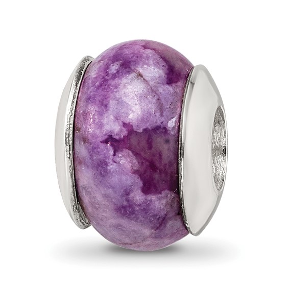 This slender purple magnasite stone bead is made of antiqued, solid sterling silver. Bead dimensions: approximately 13.25mm diameter, bead hole: 4.00mm diameter. Imported.