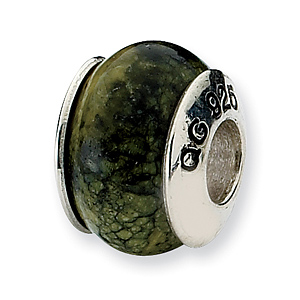 Russian green serpentine stone bead is made of antiqued, solid sterling silver. Bead dimensions: 10.9mm x 8.1mm. Bead hole: 4.00mm diameter. This Reflection bead fits all major modular bracelet brands. Available while supplies last. Import.