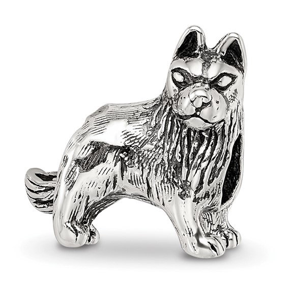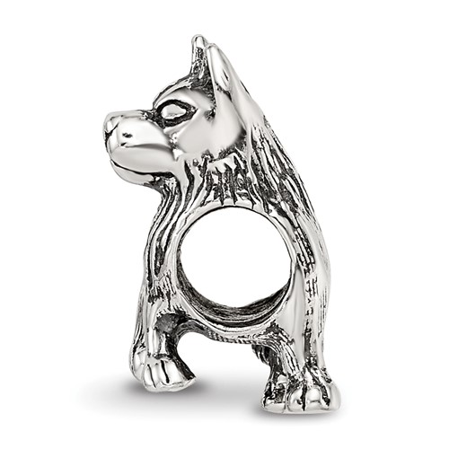 This German shepherd bead is made of antiqued, solid sterling silver. This bead fits all major modular bracelet brands. Imported.