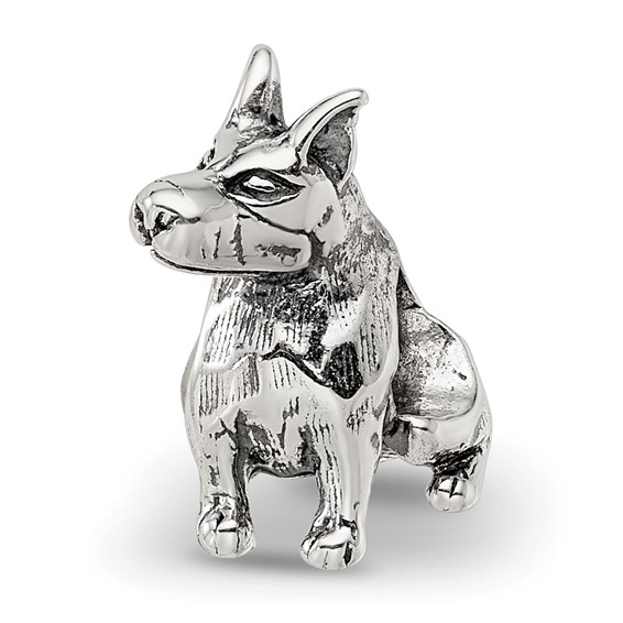 Doberman pinscher bead is made of antiqued, solid sterling silver. This bead fits all major modular bracelet brands. Imported.