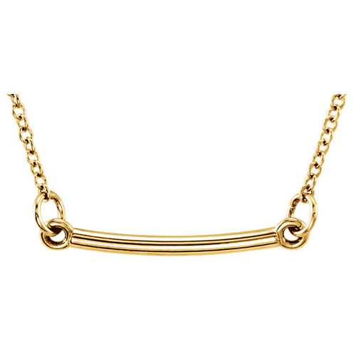 This 14kt yellow gold petite bar pendant dangles from a matching 14kt yellow gold 18in cable chain. Spring ring clasp. Pendant size: 18.25mm x 2.75mm.