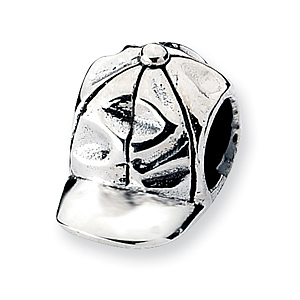 Baseball cap bead is made of antiqued, solid sterling silver. This bead fits all major modular bracelet brands. Imported.