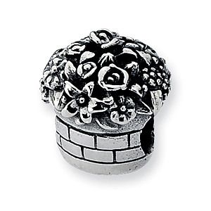 Flower bouquet bead is made of antiqued, solid sterling silver. This bead fits all major modular bracelet brands. Imported.