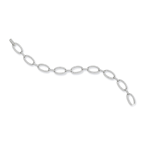Polished sterling silver set with high quality micro pav cubic zirconia. Bracelet length: 7 1/4in. Link dimensions: 9mm x 15mm. Weight: 8.94 grams.
