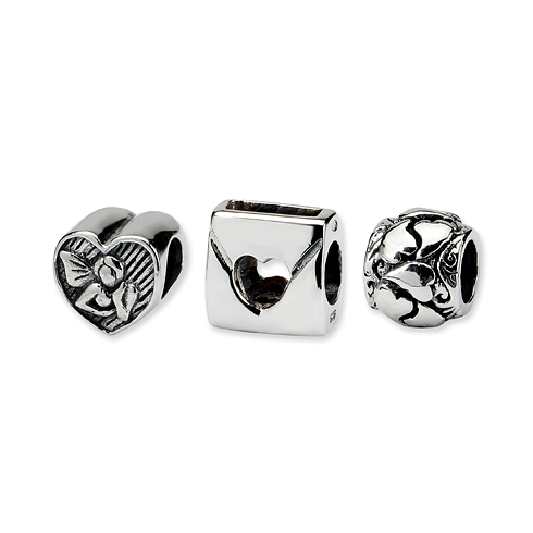 Made of antiqued, solid sterling silver. Can't decide which bead to buy? Try this carefully selected set of Love beads. Imported.