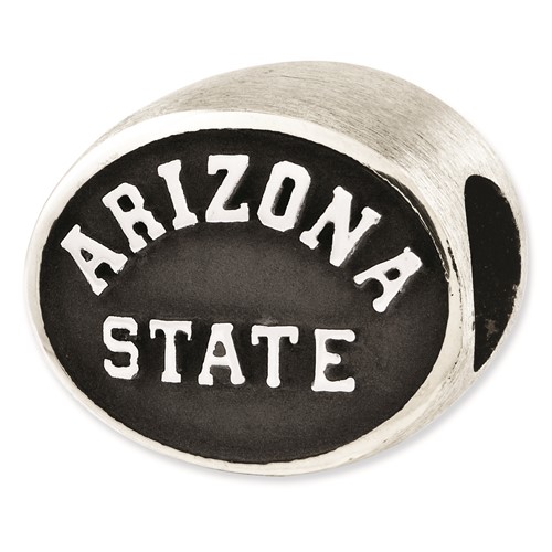 Arizona State University bead is made of antiqued, solid sterling silver. Two-sided design. Officially licensed product, manufactured by the Collegiate Bead Company in the USA. This bead is compatible with all major personalized bead bracelet systems.