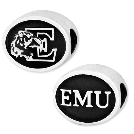 Eastern Michigan University bead is made of antiqued, solid sterling silver. Two-sided design. Officially licensed product, manufactured by the Collegiate Bead Company in the USA. This bead is compatible with all major personalized bead bracelet systems.