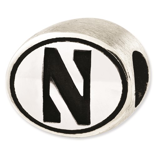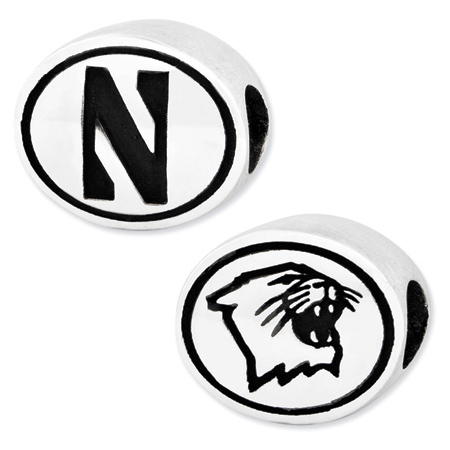 Northwester University bead is made of antiqued, solid sterling silver. Two-sided design. Officially licensed product, manufactured by the Collegiate Bead Company in the USA. This bead is compatible with all major personalized bead bracelet systems.