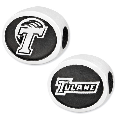Tulane University bead is made of antiqued, solid sterling silver. Two-sided design. Officially licensed product, manufactured by the Collegiate Bead Company in the USA. This bead is compatible with all major personalized bead bracelet systems.