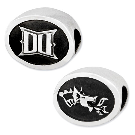 Drexel University is bead is made of antiqued, solid sterling silver. Two-sided design. Officially licensed product, manufactured by the Collegiate Bead Company in the USA. This bead is compatible with all major personalized bead bracelet systems.