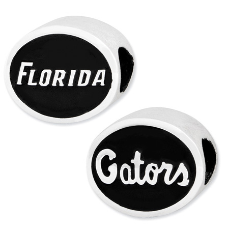 Florida Gators bead is made of antiqued, solid sterling silver. Two-sided design. Officially licensed product, manufactured by the Collegiate Bead Company in the USA. This bead is compatible with all major personalized bead bracelet systems.