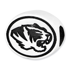 University of Missouri Tigers bead is made of antiqued, solid sterling silver. Two-sided design. Officially licensed product, manufactured by the Collegiate Bead Company in the USA. This bead is compatible with all major personalized bead bracelet systems.
