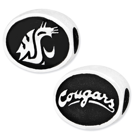 Washington State University bead is made of antiqued, solid sterling silver. Two-sided design. Officially licensed product, manufactured by the Collegiate Bead Company in the USA. This bead is compatible with all major personalized bead bracelet systems.