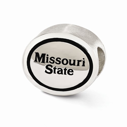 Missouri State University bead is made of antiqued, solid sterling silver. Two-sided design with the same Missouri State wording on both sides. Officially licensed product, manufactured by the Collegiate Bead Company in the USA. This bead is compatible with all major personalized bead bracelet systems.