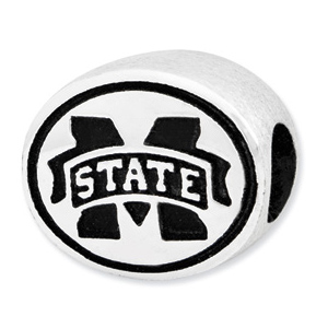 Mississippi State University bead is made of antiqued, solid sterling silver. Two-sided design. Officially licensed product, manufactured by the Collegiate Bead Company in the USA. This bead is compatible with all major personalized bead bracelet systems.